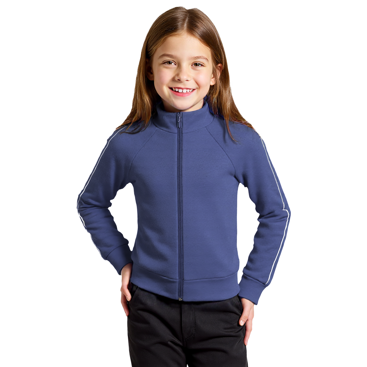 Os detalhes em branco nas mangas adicionam um toque de charme e personalidade, tornando esta jaqueta ainda mais especial. O zíper frontal facilita o vestir e o tirar, ideal para as crianças que adoram praticidade. Além disso, a jaqueta é leve e fácil de cuidar, perfeita para o dia a dia agitado das crianças.