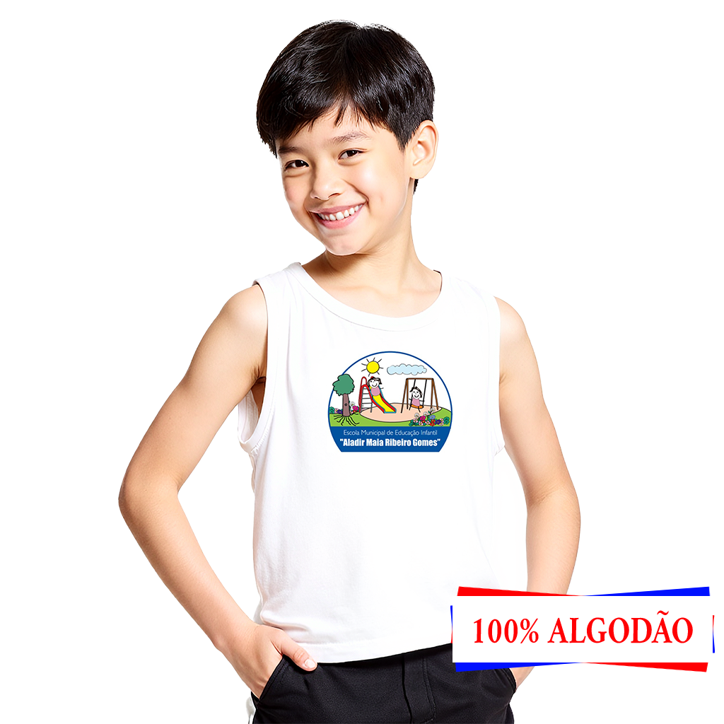 Camiseta Regata com logo da EMEI Aladir Maia Ribeiro Gomes.