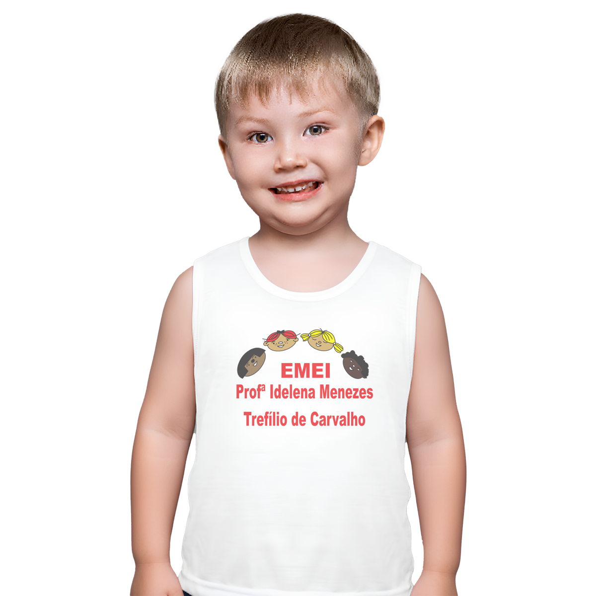 Camiseta Regata com logo da EMEI Profª Idelena Menezes Trefílio de Carvalho.