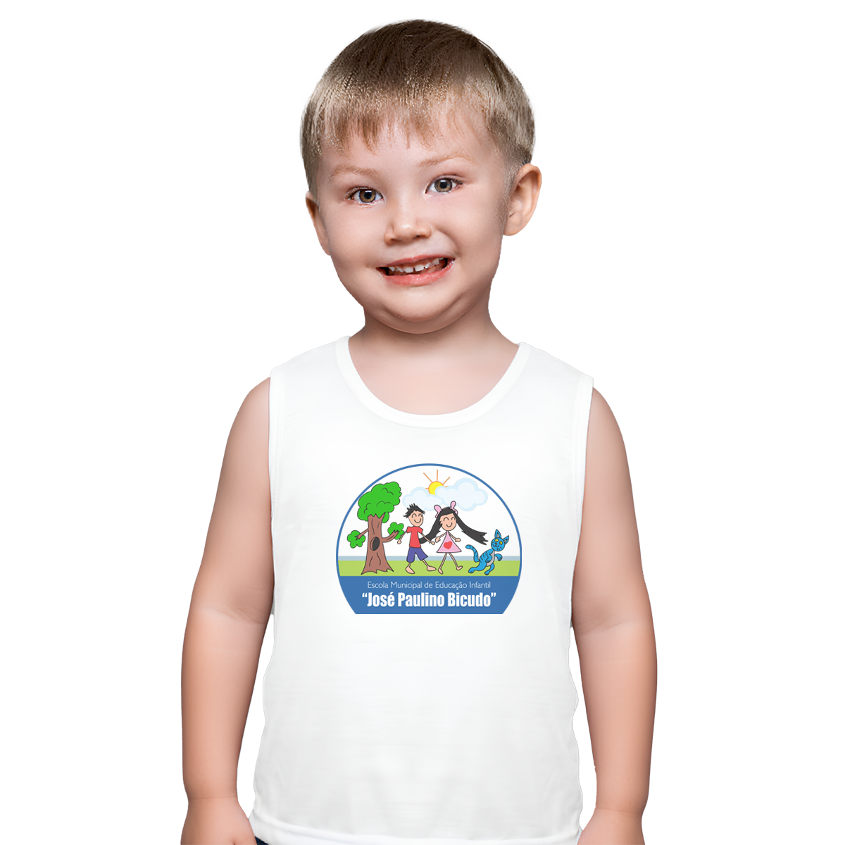 Camiseta Regata com logo da EMEI José Paulino Bicudo.