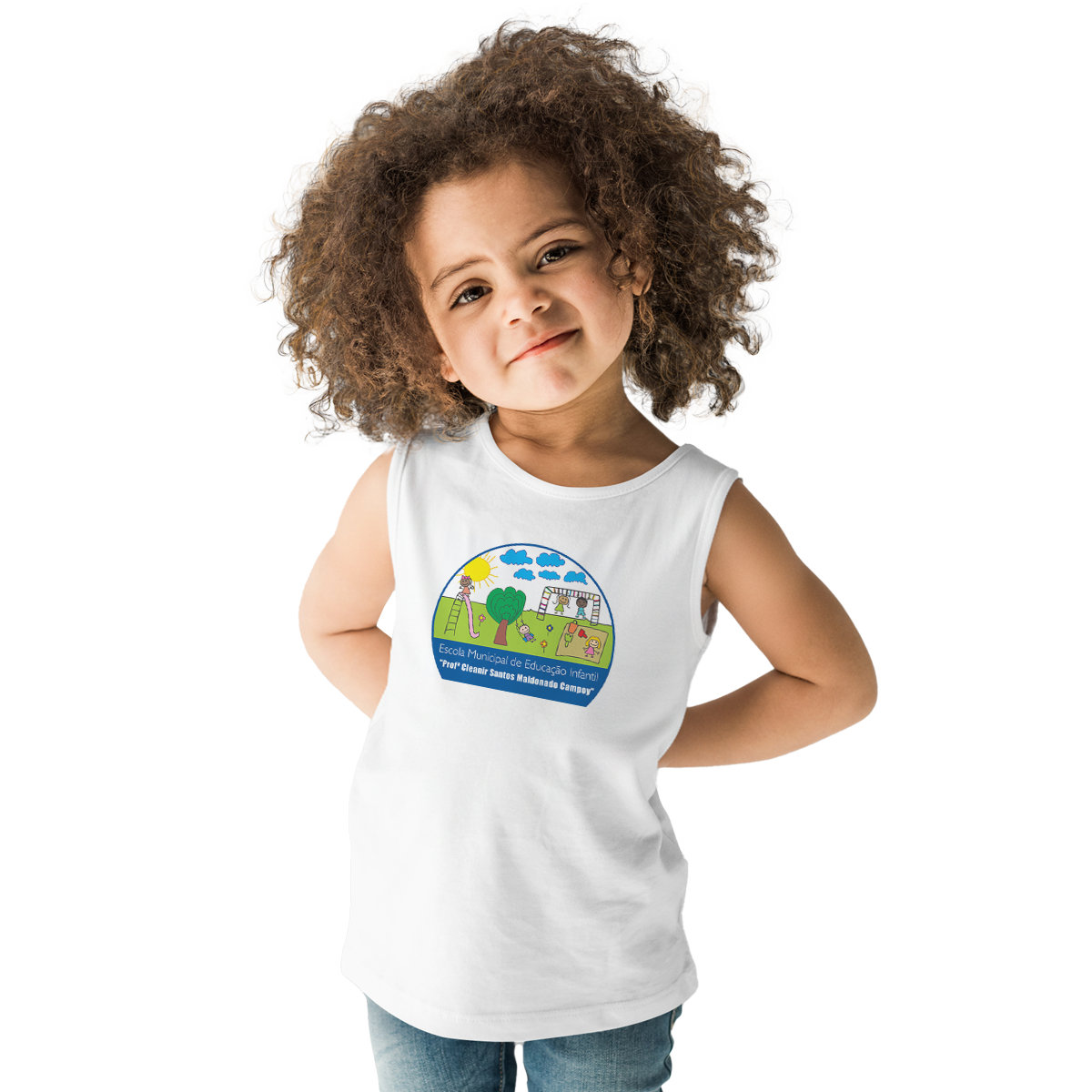 Camiseta Regata com logo da EMEI Profª Cleanir Santos Maldonado Campoy.