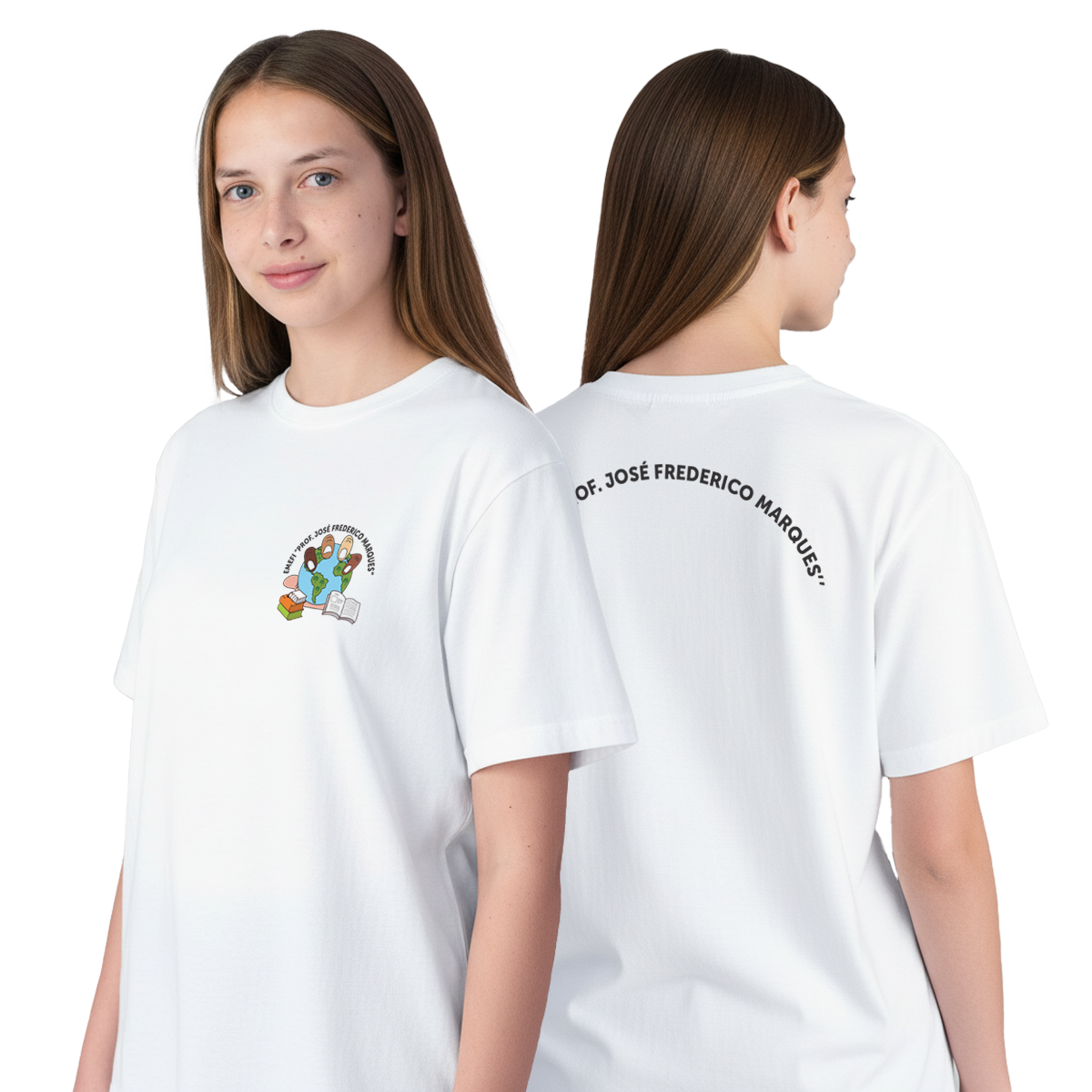 Camiseta Manga Curta com logo da EMEFI Prof. José Frederico Marques.