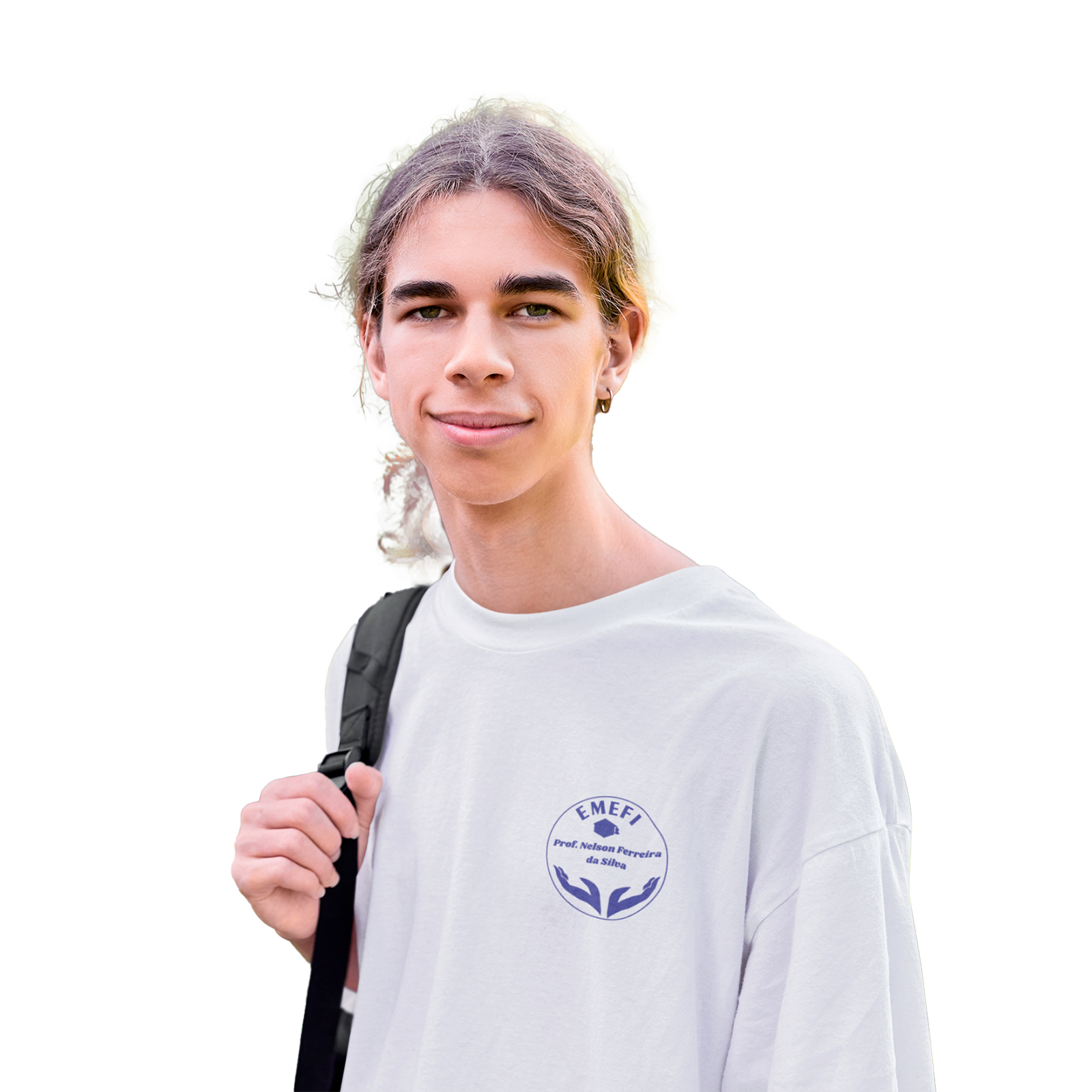 Camiseta Manga Curta com logo da EMEFI Prof. Nelson Ferreira da Silva.