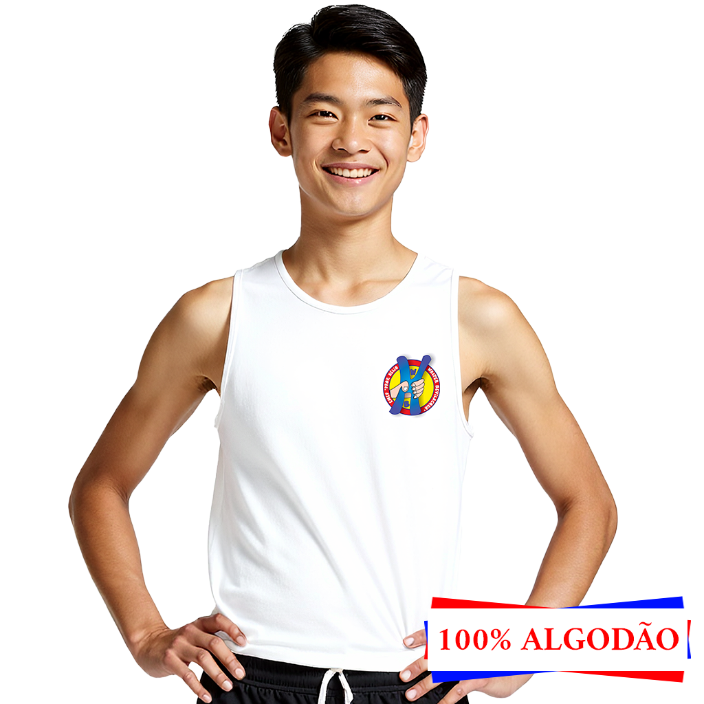Camiseta Regata com logo da EMEF Prof. Hélio Walter Bevilacqua.