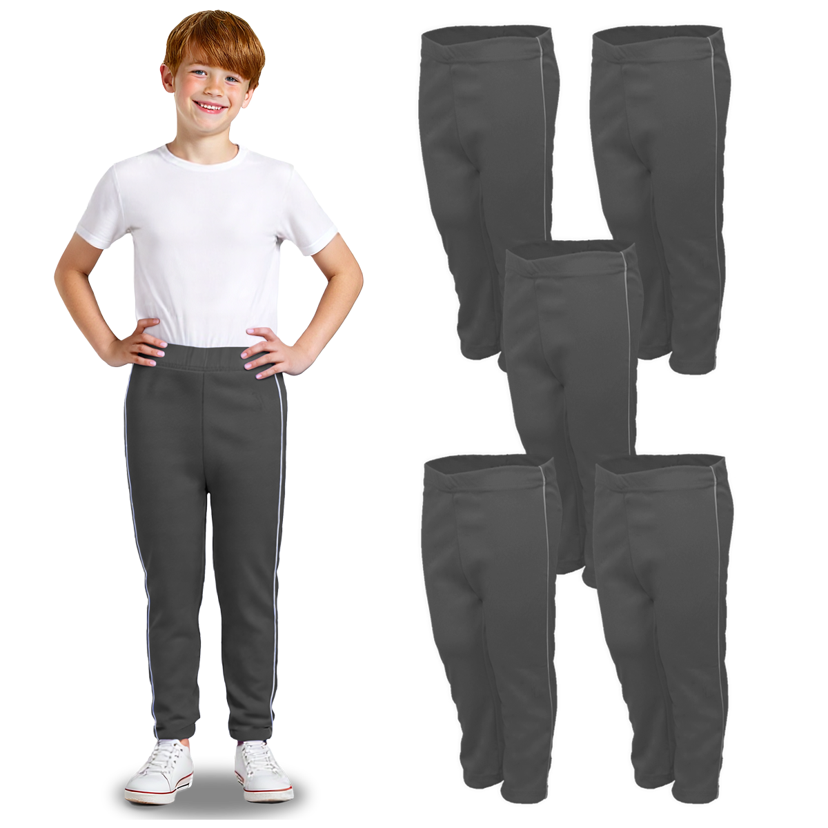 Calça de helanca sem flanela unissex, mais resistente que Tactel e muito mais confortável, cintura com elástico, friso branco na lateral. Ótimo caimento, ideal para o uso tanto no verão, quanto no inverno. Usando como uniforme escolar.