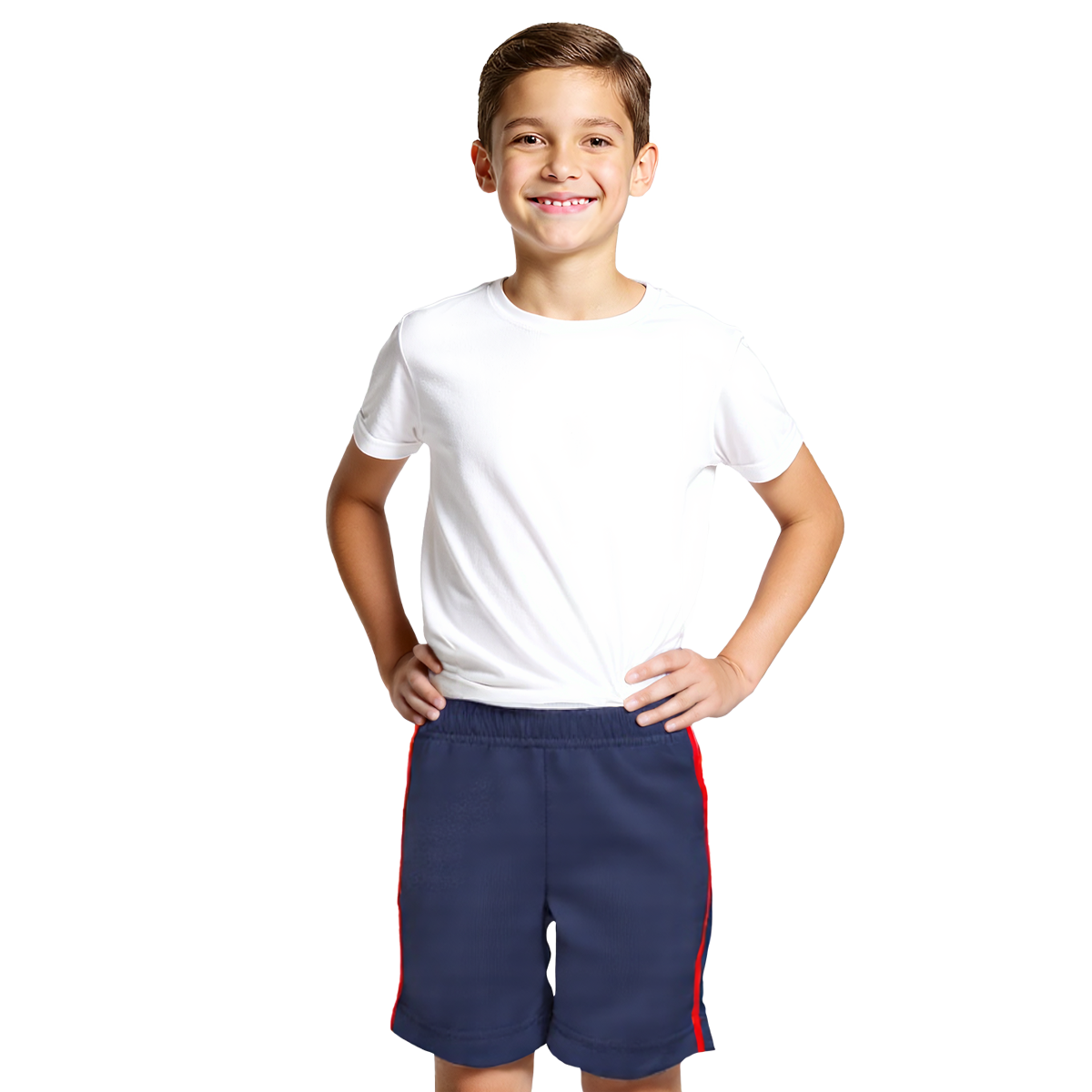 Apresentamos a Bermuda Helanca Infantil Azul Marinho com Friso Vermelho, a combinação perfeita de conforto, estilo e praticidade para os pequenos aventureiros!