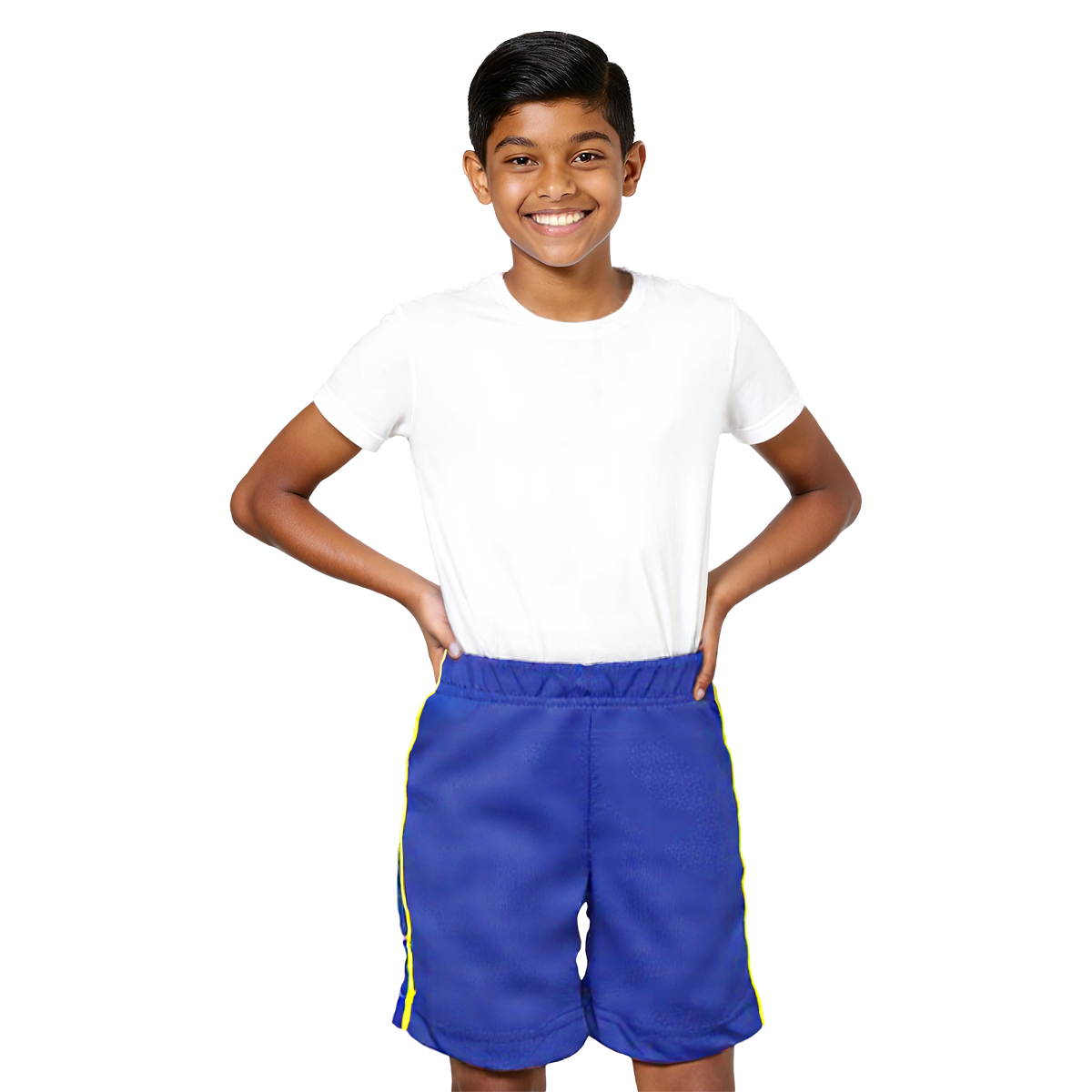 Apresentamos a Bermuda Helanca Juvenil Azul Royal com Friso Listra Amarelo, a escolha perfeita para os jovens que buscam conforto, estilo e praticidade em todas as suas atividades!