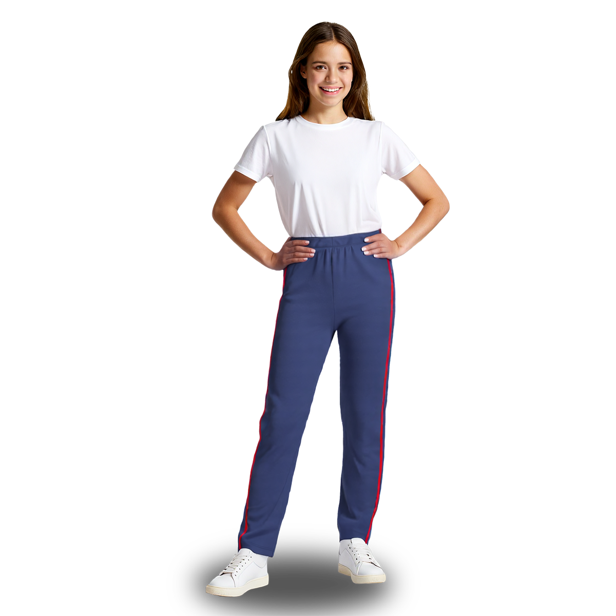 Apresentamos a Calça Helanca Juvenil Azul Marinho com Friso Vermelho, a combinação perfeita de conforto, durabilidade e estilo para acompanhar os jovens em todas as suas aventuras!